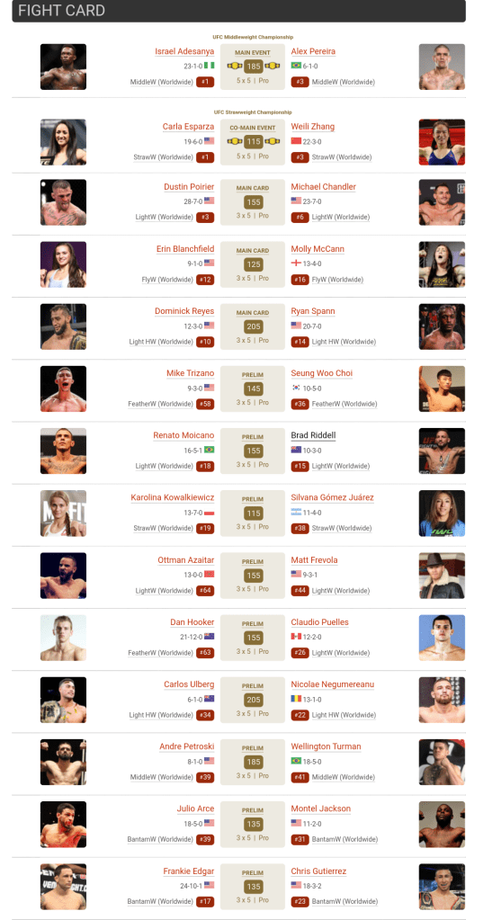 As of now, there are currently 14 fights booked for the UFC’s return to Madison Square Garden, with the highly anticipated fight between Israel Adesanya and Alex Pereira scheduled to headline the event.