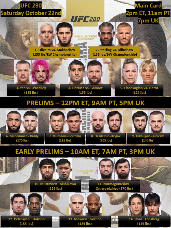 For the full breakdown of these fights and the rest of the undercard, make sure to check back on OddSmokerMMA later in the week when I will be posting my full preview for UFC 280, my picks and bets for the event, and much more!