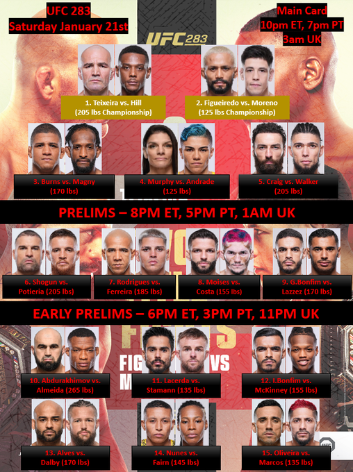 The weigh-ins for UFC 283 are officially in the books, and somewhat shockingly, we have all 15 fights holding up and all 30 fighters made weight for tomorrow night’s card in Rio de Janeiro.