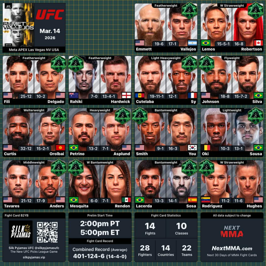 We’re headed back to the Meta APEX for UFC Vegas 114 this weekend with a pretty entertaining lineup headlined by Josh Emmett and Kevin Vallejos in a featherweight showdown.